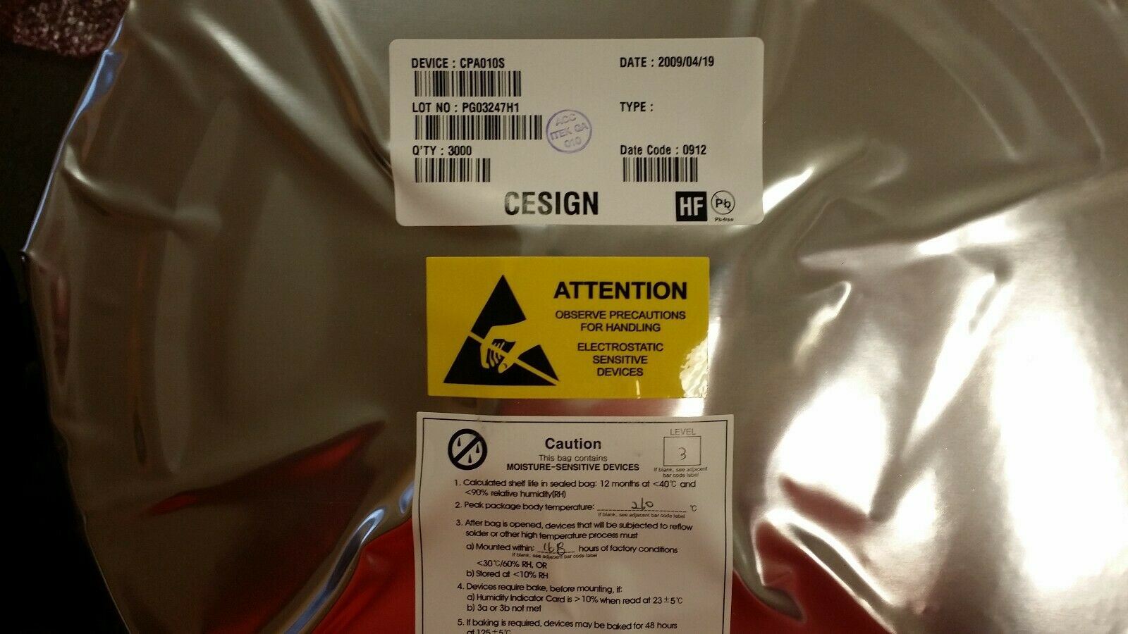 THIS LISTING IS FOR (3000 PC REEL) OF CPA010S BY CESIGN