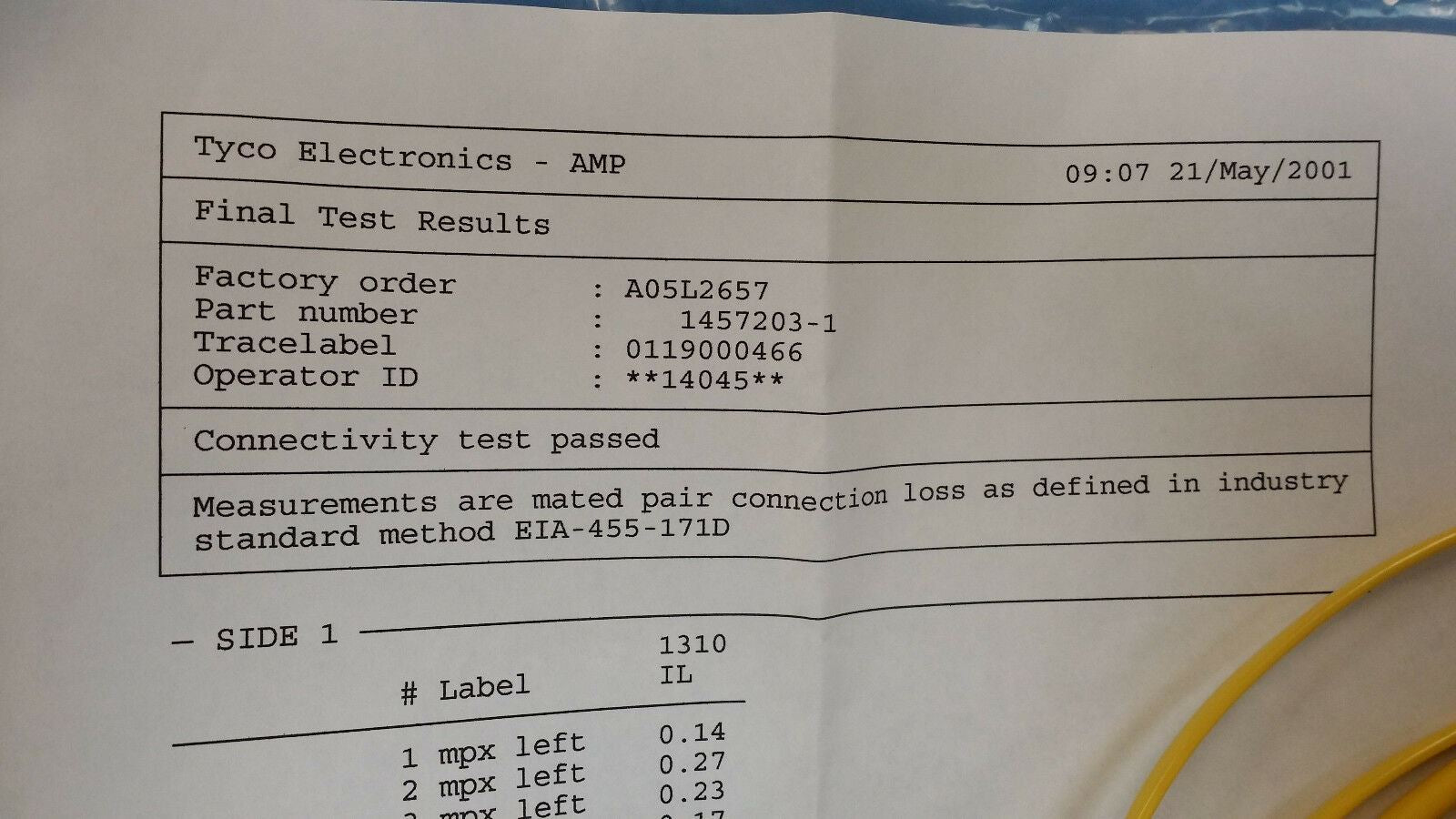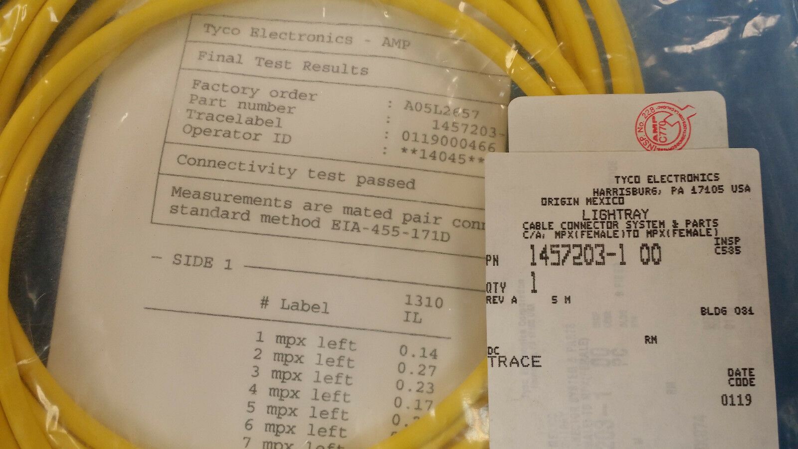 THIS LISTING IS FOR (1 CABLE) OF 1457203-1 BY AMP/TYCO