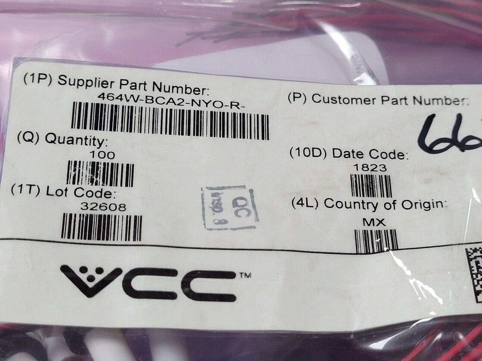 THIS IS FOR (1 PC) OF 464W-BCA2-NYO-R- BY VCC