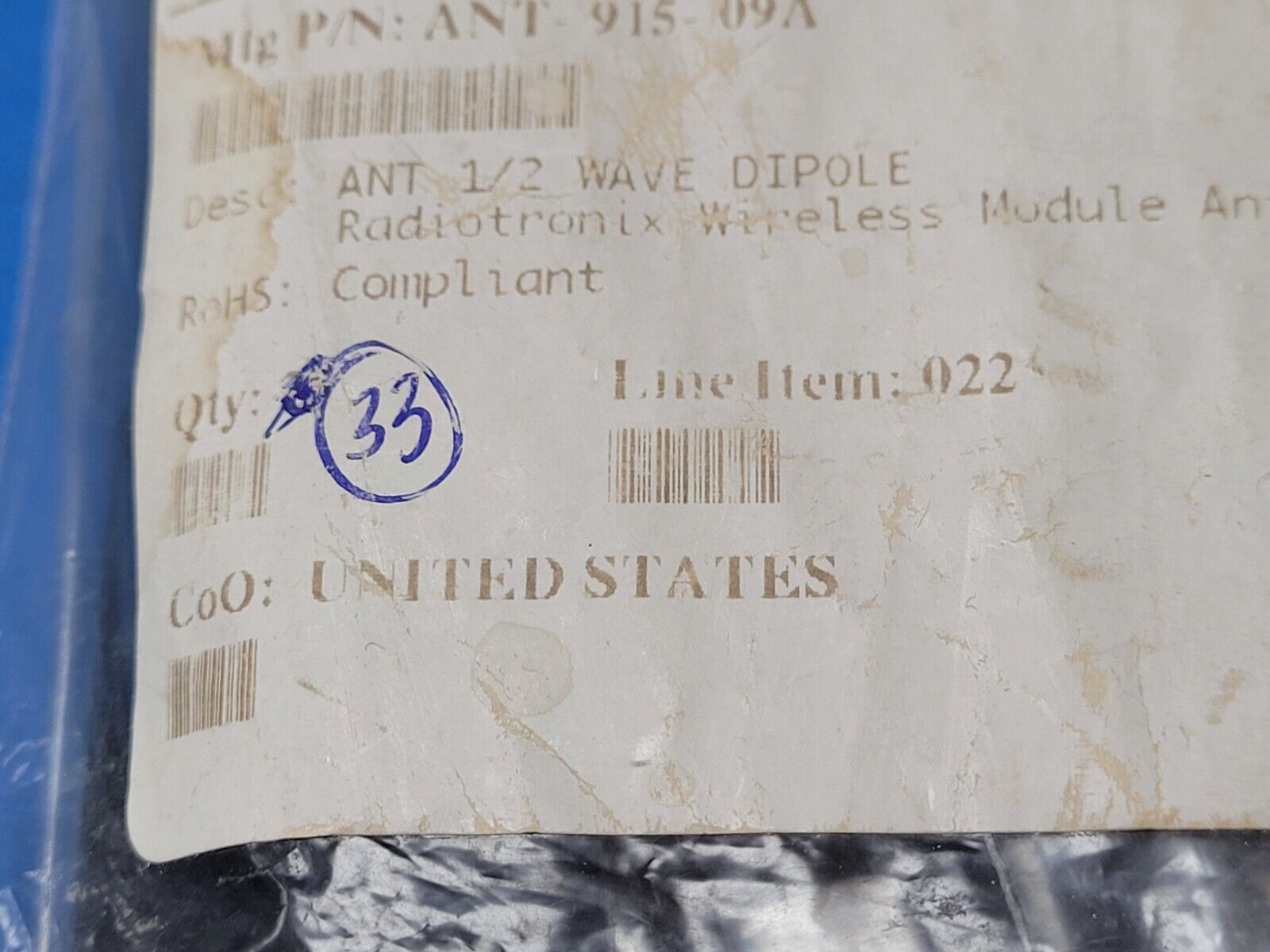 THIS IS FOR (1 PC) OF ANT-915-09A BY RADIOTRONIX