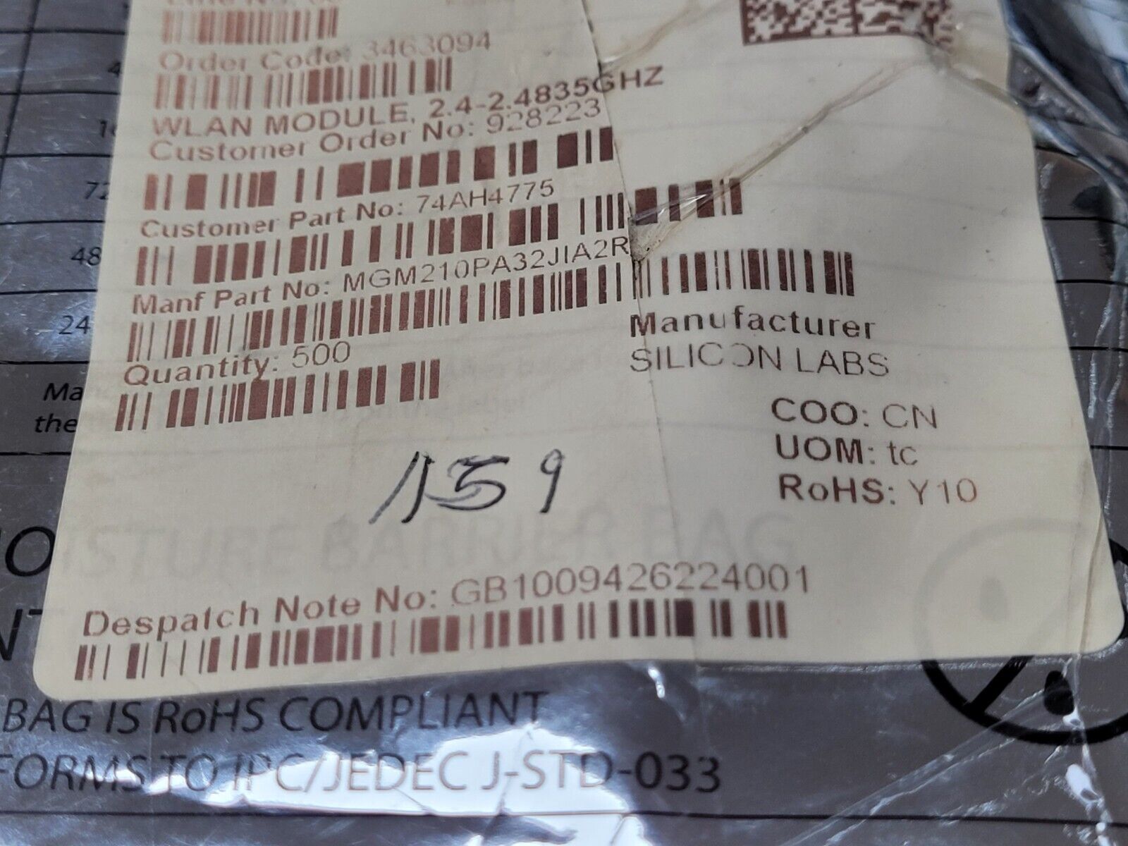 Moisture Sensitive: Yes