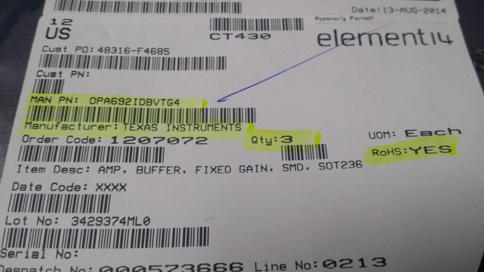 THIS IS FOR (1 PC) OF OPA692IDBVTG4 BY TI