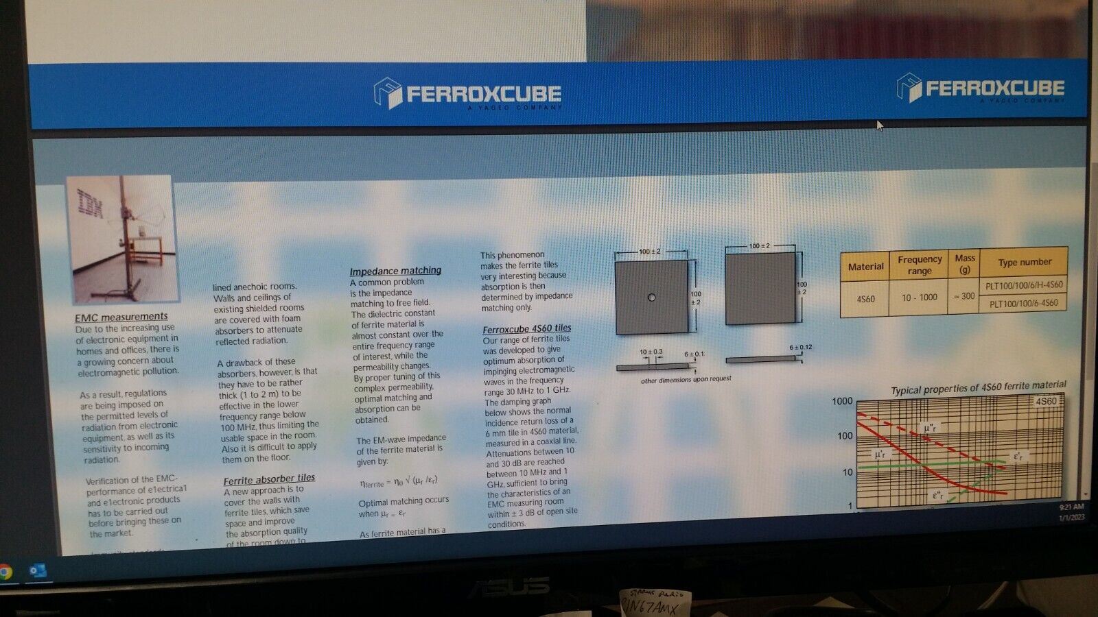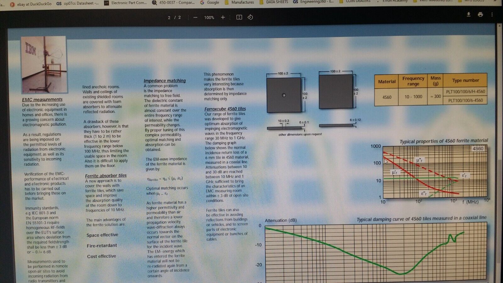 (1 PC) PLT100/100/6/H-4S60 Ferrite Absorber Tiles, Range 30 MHz - 1 GHz