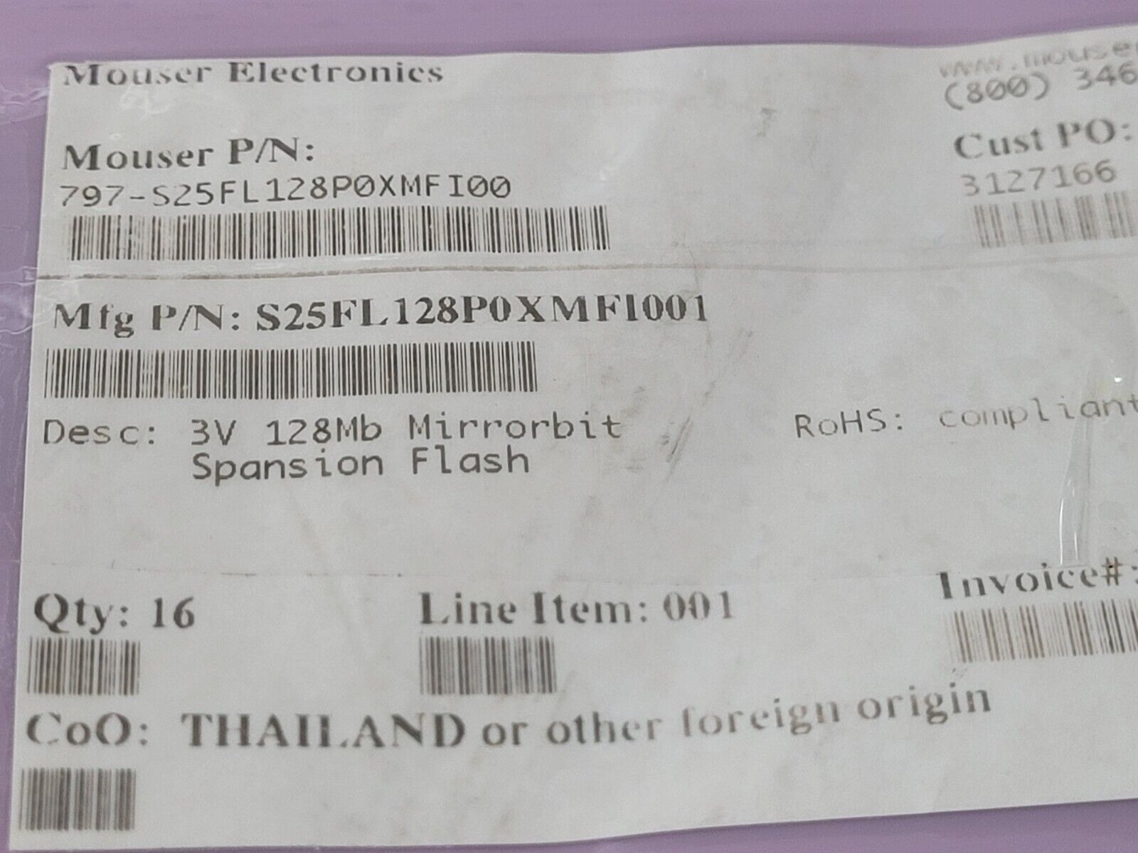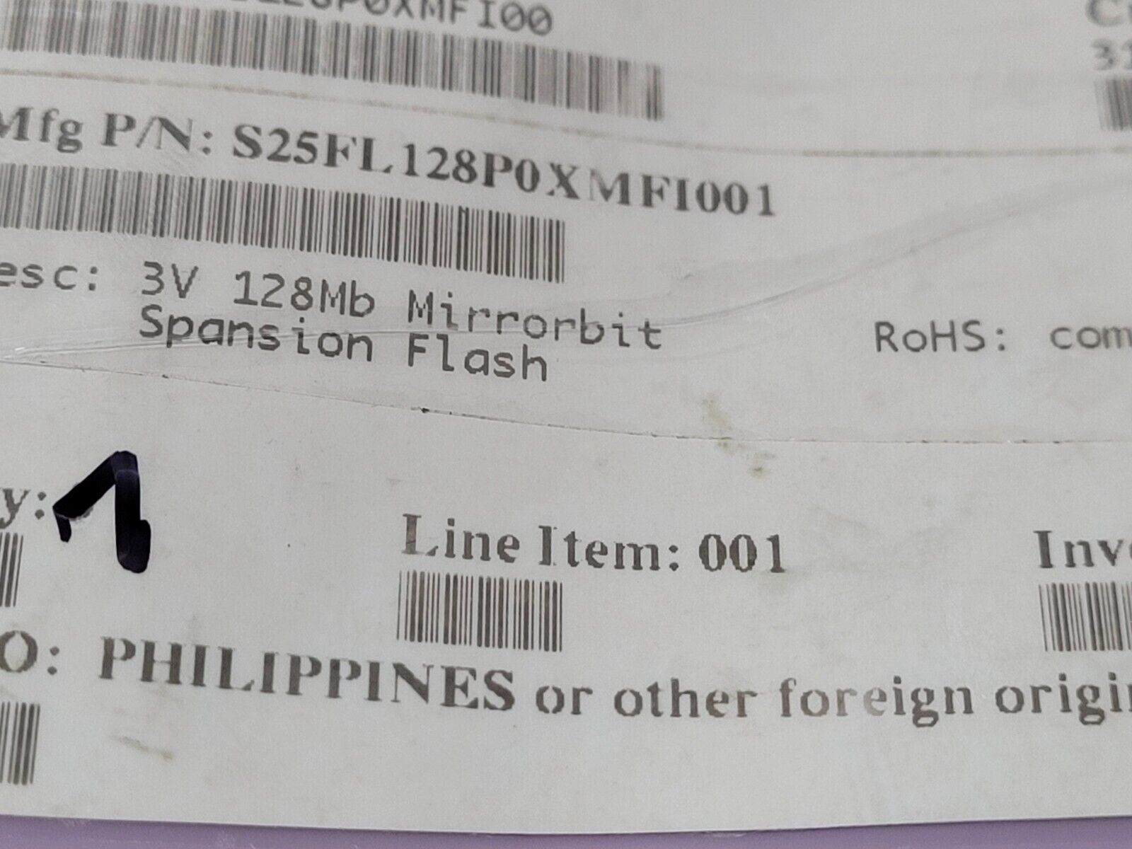 THIS IS FOR (1 PC) OF S25FL128P0XMFI001 BY SPANSION