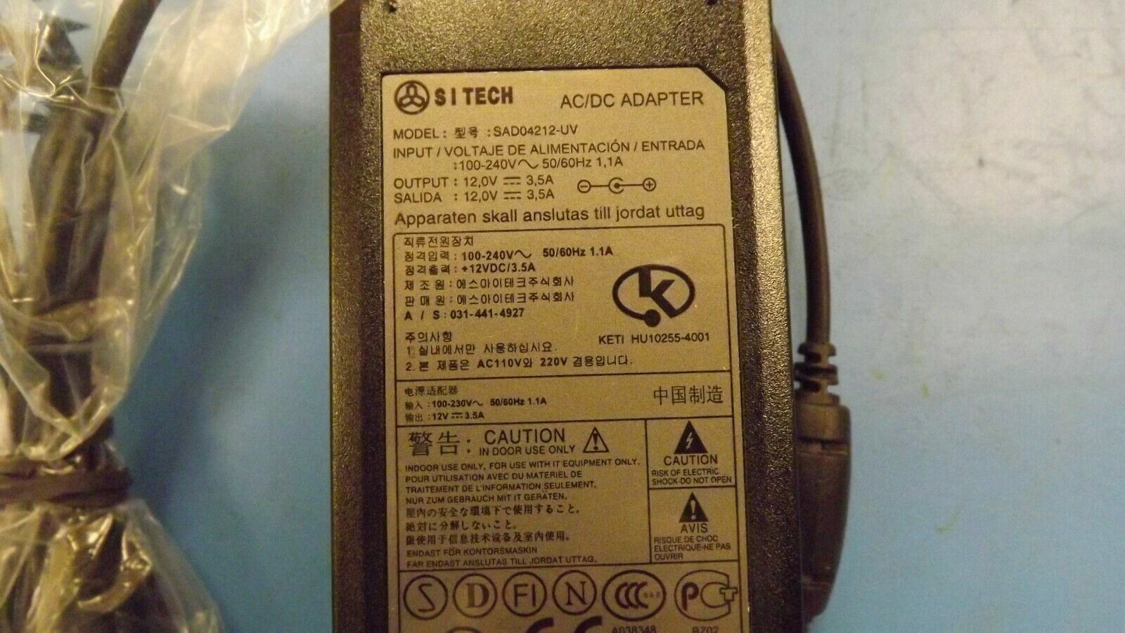 (1) SAD04212-UV Power Supply PS12V 3.5A AC/DC for LCD Monitor/TV W/ Power Cord