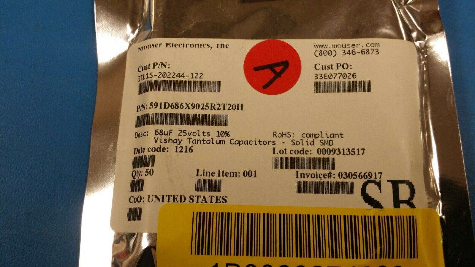 Conformal Coated Tantalum Capacitor 68uF 25V SMD ROHS