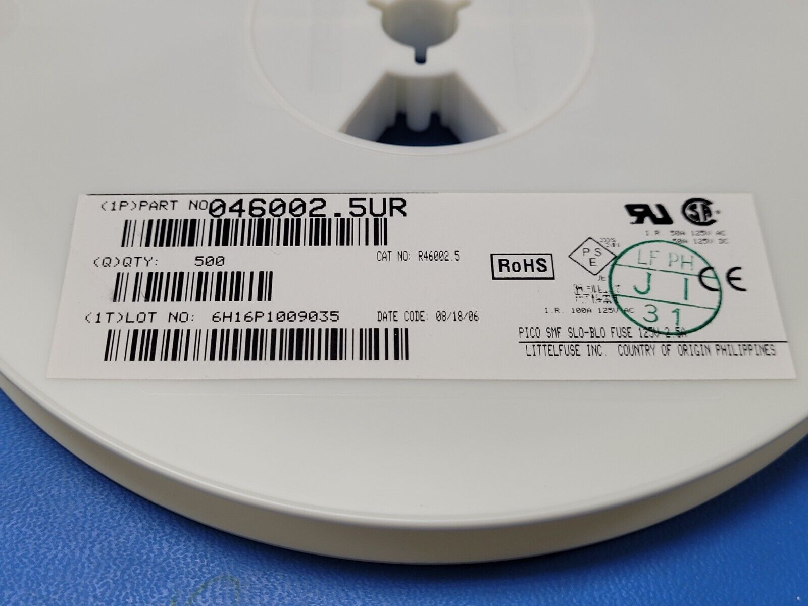 (10 PCS) 046002.5UR LITTELFUSE Surface Mount Fuses 125V 2.5A Slo-Blo ROHS