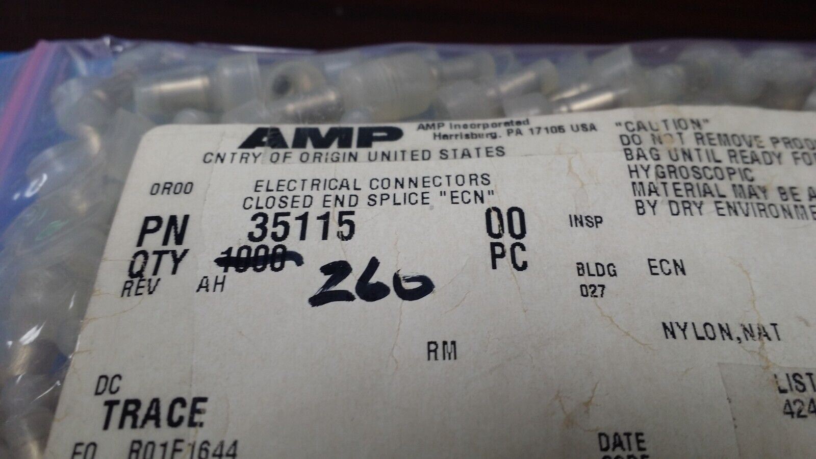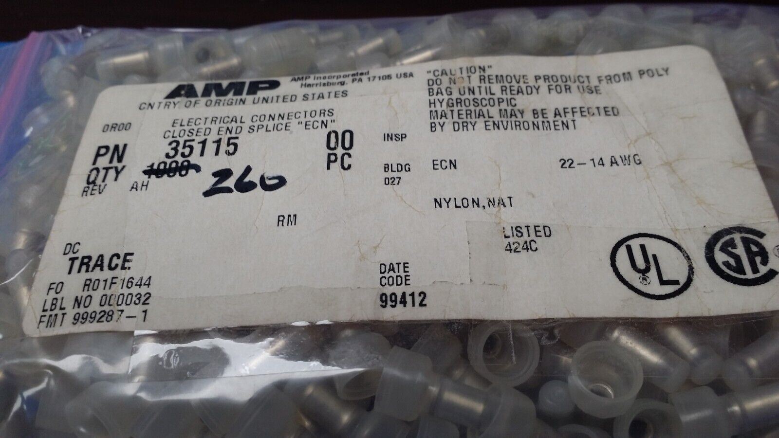 (10 PCS) 35115 TYCO ELECTRONICS CONN SPLICE 14-22 AWG CRIMP