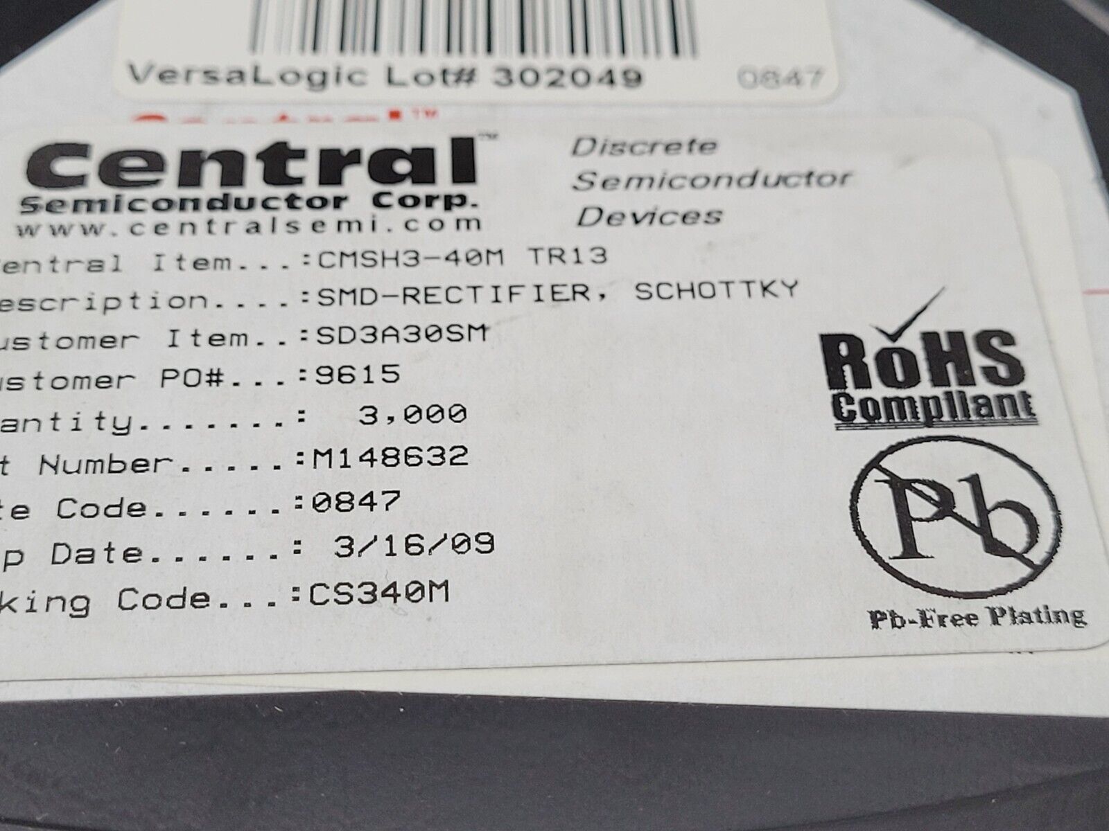 THIS IS FOR (10 PCS) OF CMSH3-40M-BK-PBFREE BY CENTRAL SEMI