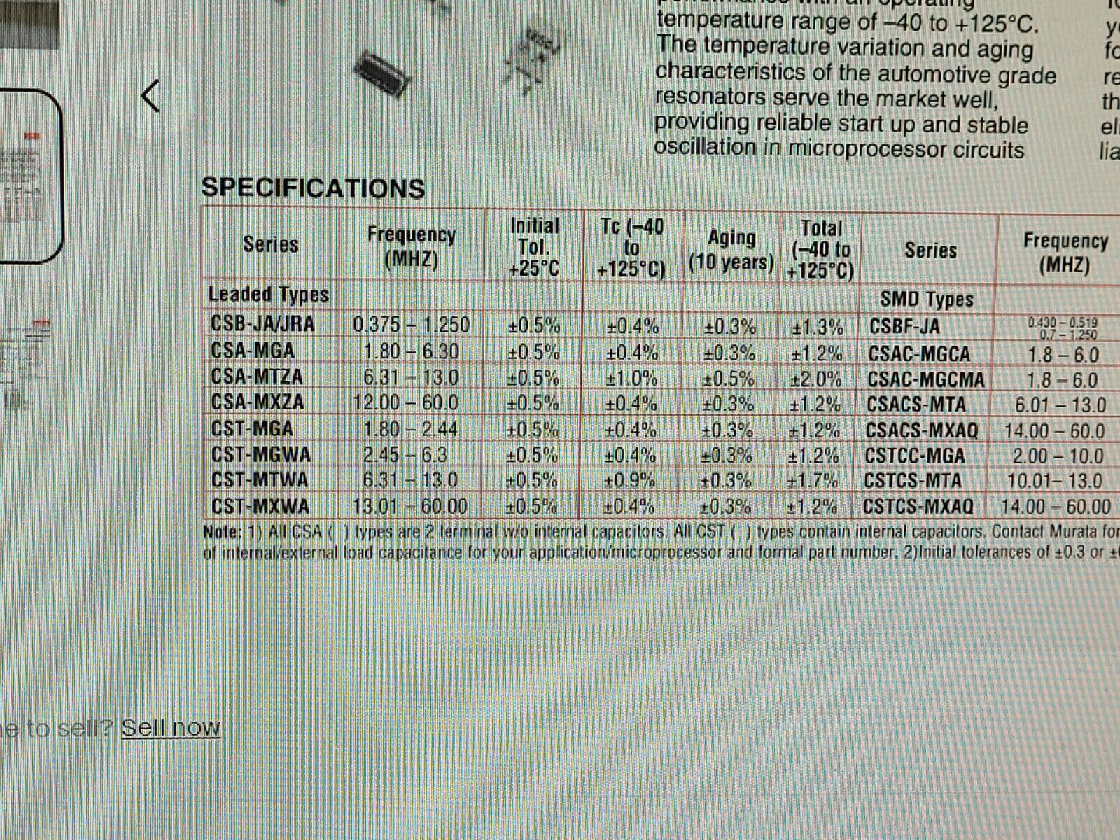 (10 PCS) CSA6.14MG MURATA Ceramic Resonator 6.14 MHz Automotive grade TH