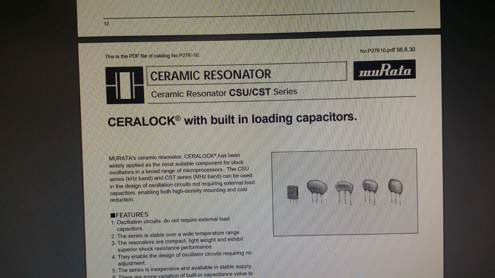 CERALOCK CERAMIC RESONATOR 4.19MHz 3 PIN SIP