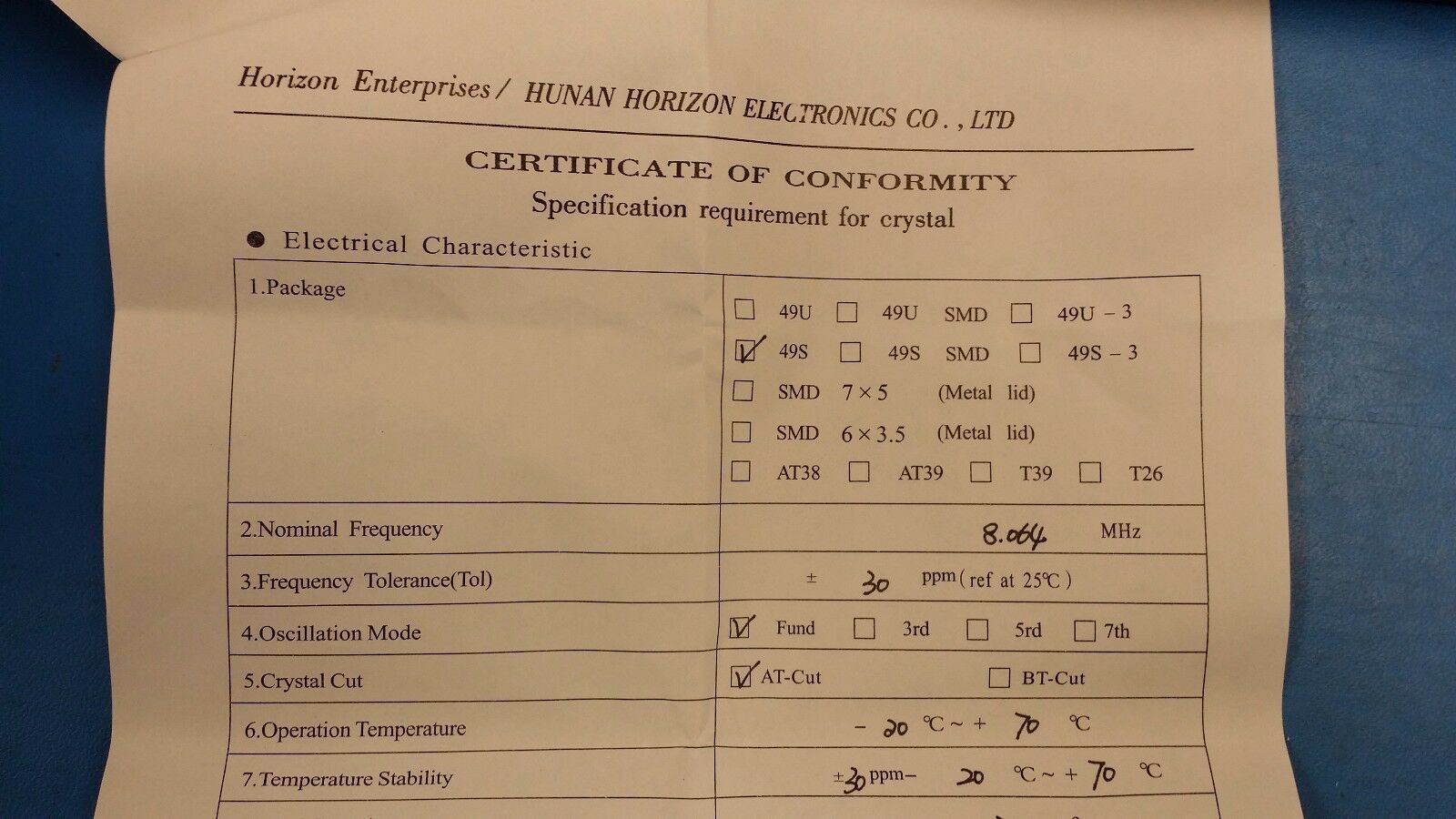 (10 PCS) HEX14-8.064Mhz QUARTZ CRYSTAL OSCILLATOR LOW PROFILE HC49S