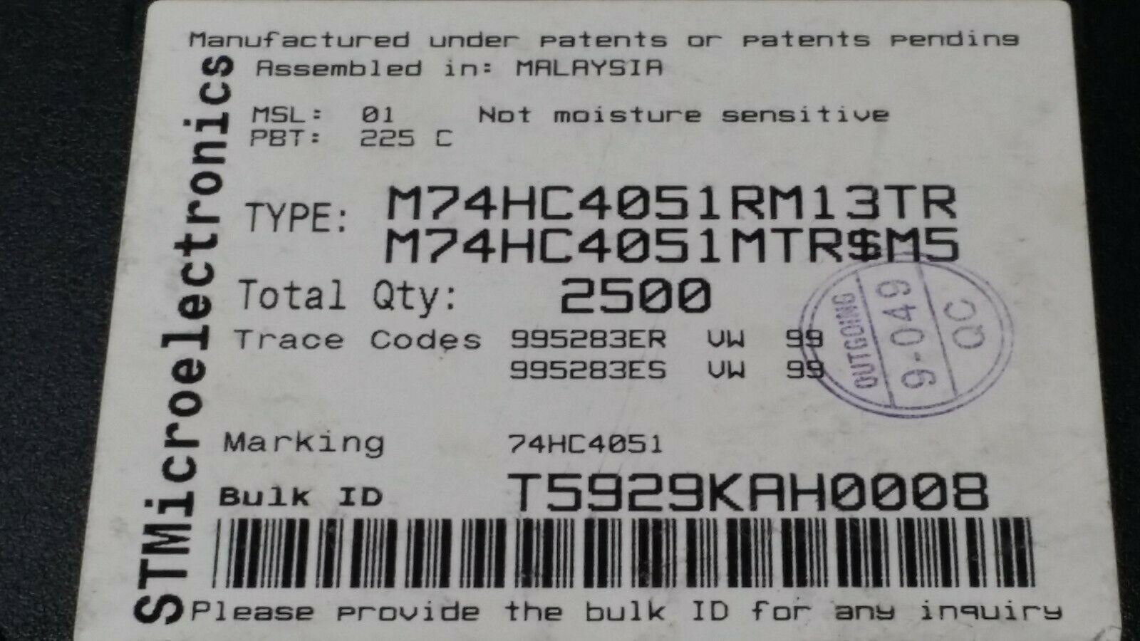 THIS IS FOR (10 PCS) OF M74HC4051RM13TR BY STMICRO