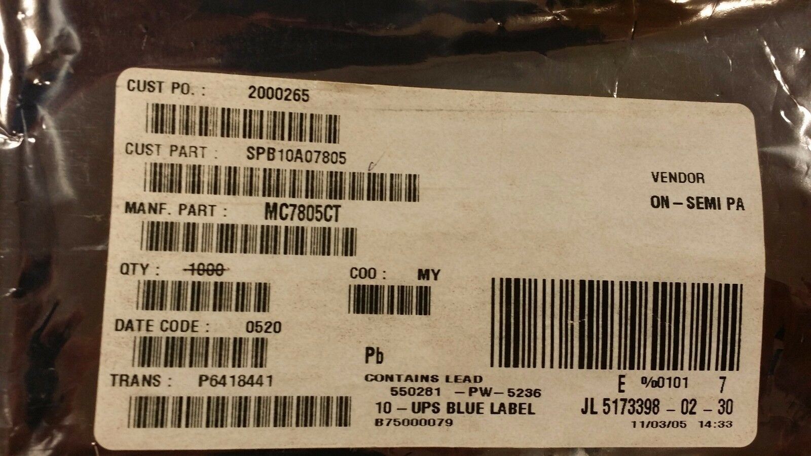 THIS LISTING IS FOR (10 PCS) OF MC7805CT BY ON SEMI OR MOT