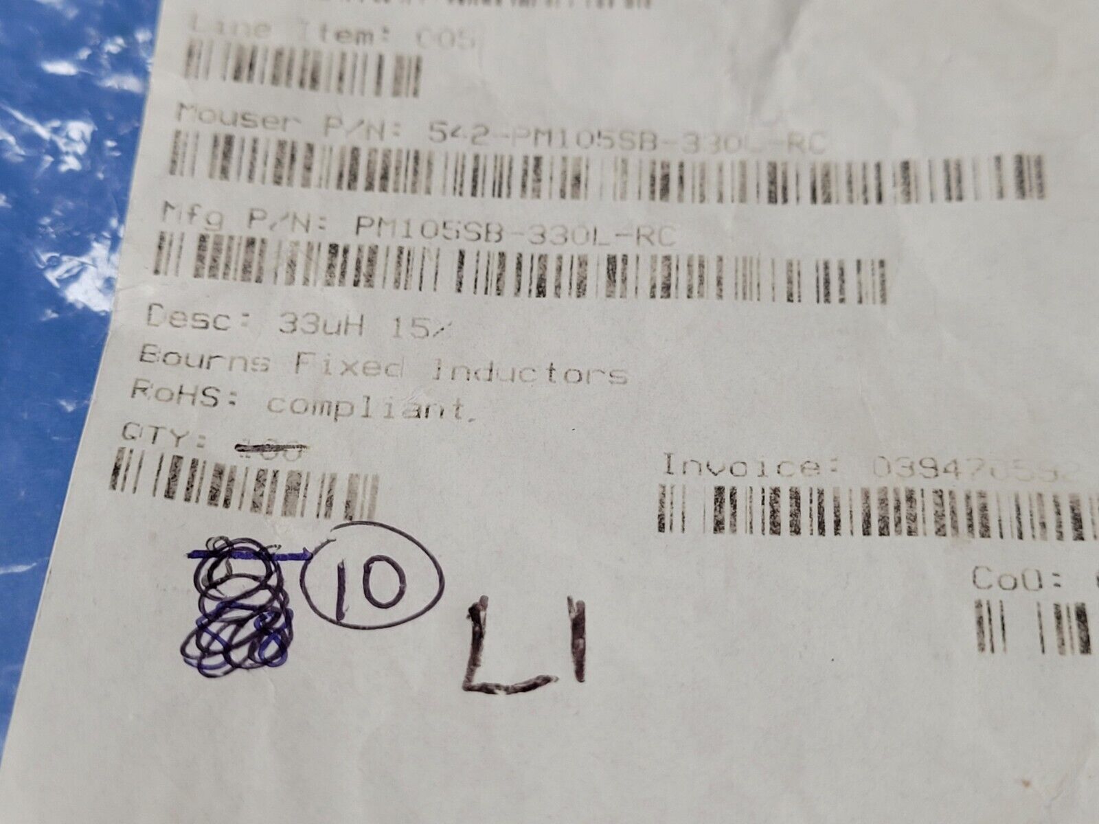 THIS IS FOR (10 PCS) OF PM105SB-330L-RC BY BOURNS