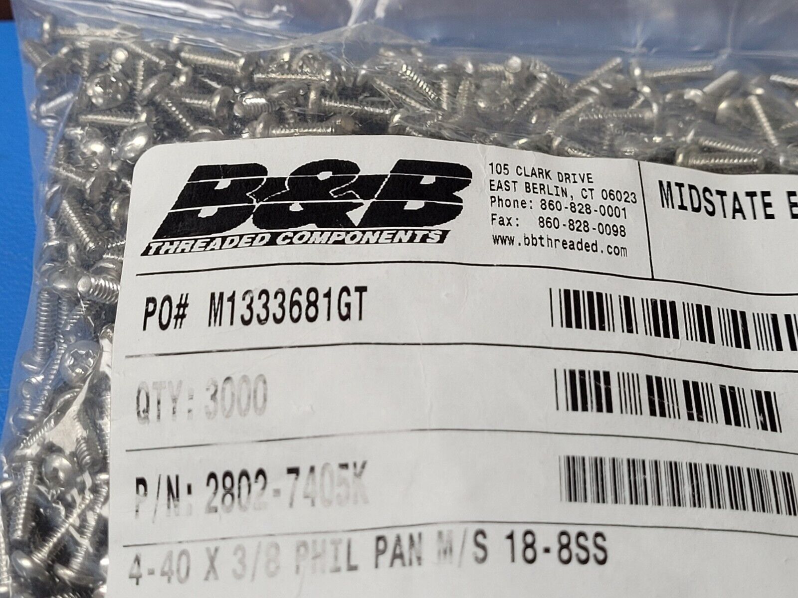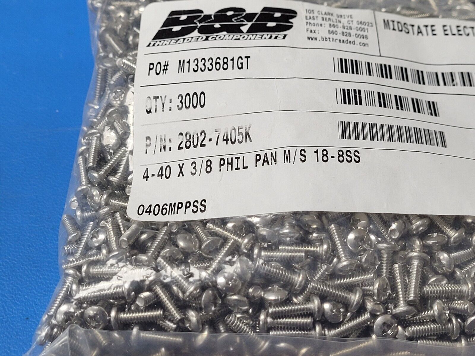 (100 PCS) 2802-7405K B&B SCREW 4-40 X 3/8 PHILIPS PAN HEAD M/S SS-18-8