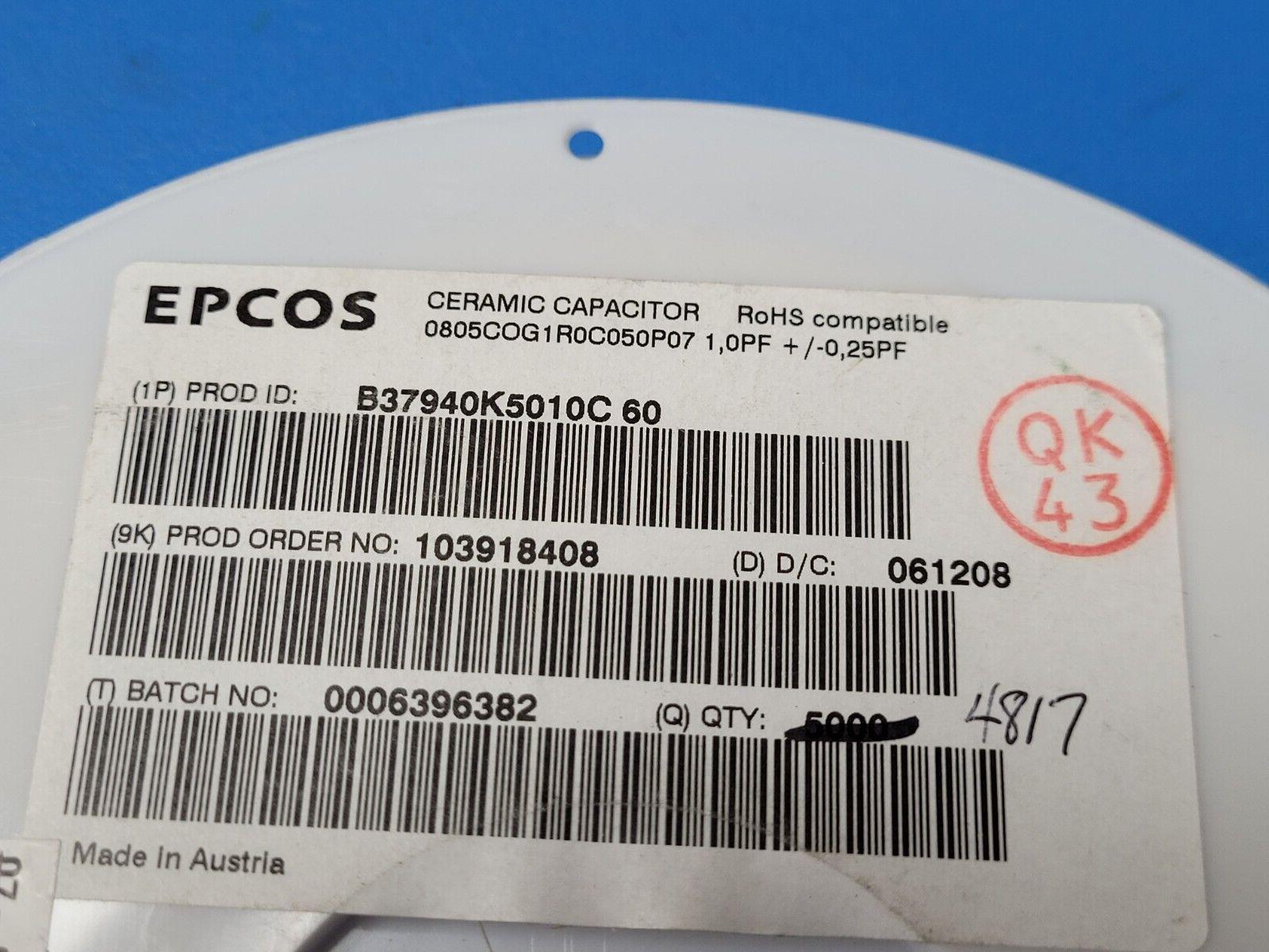 (100 PCS) B37940K5010C60 1 pF ±0.25pF 50V Ceramic Capacitor C0G, NP0 0805 ROHS