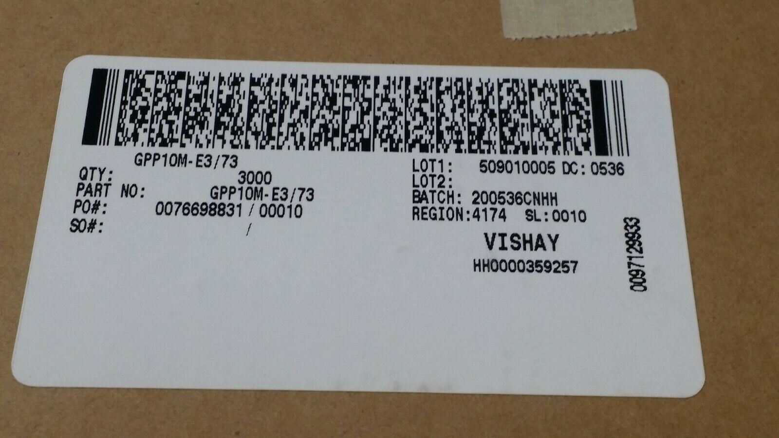 THIS IS FOR (100 PCS) OF GPP10M-E3/73 BY VISHAY