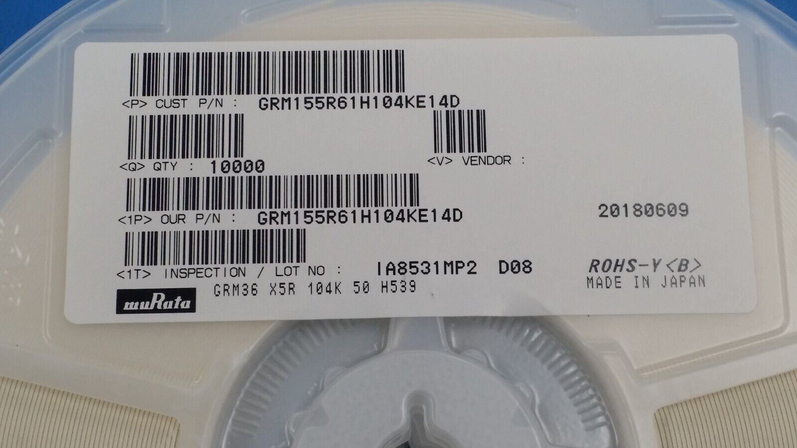 THIS LISTING IS FOR (100 PCS) OF GRM155R61H104KE14D BY MURATA