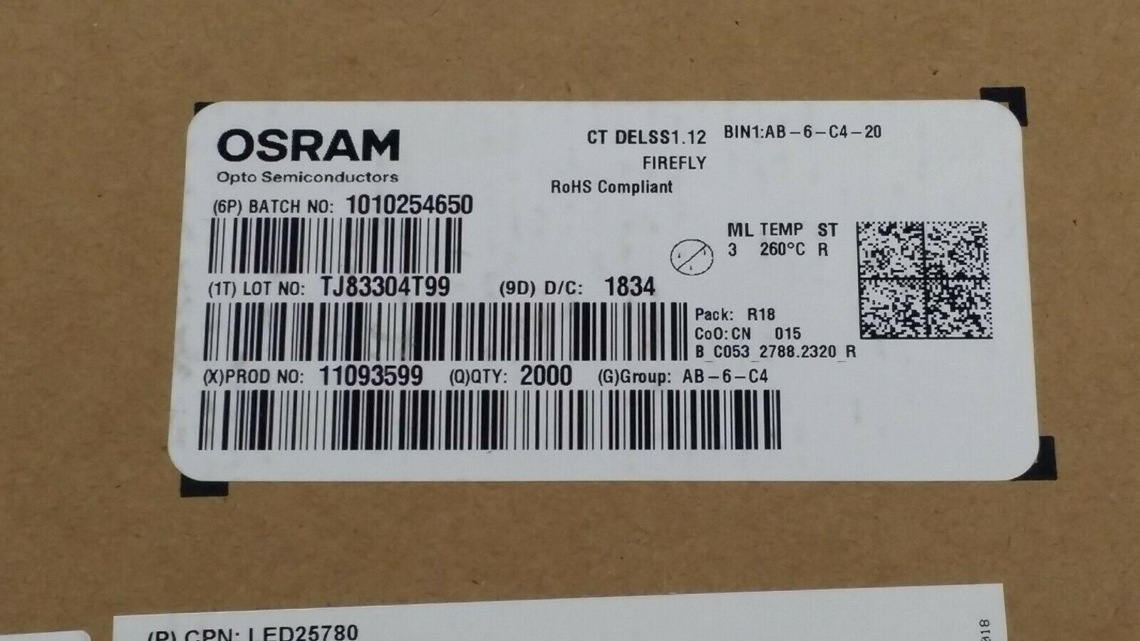 THIS IS FOR (100 PCS) CT DELSS1.12-AABA-36-44G4 BY OSRAM Q65112A1193
