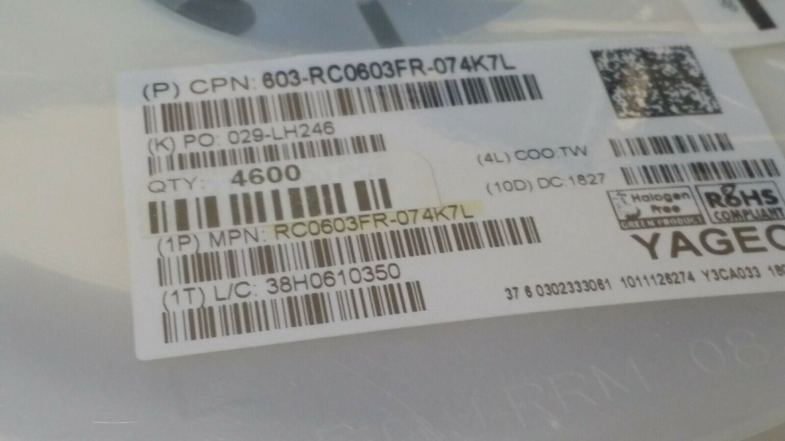 THIS IS FOR (100 PCS) OF RC0603FR-074K7L BY YAGEO