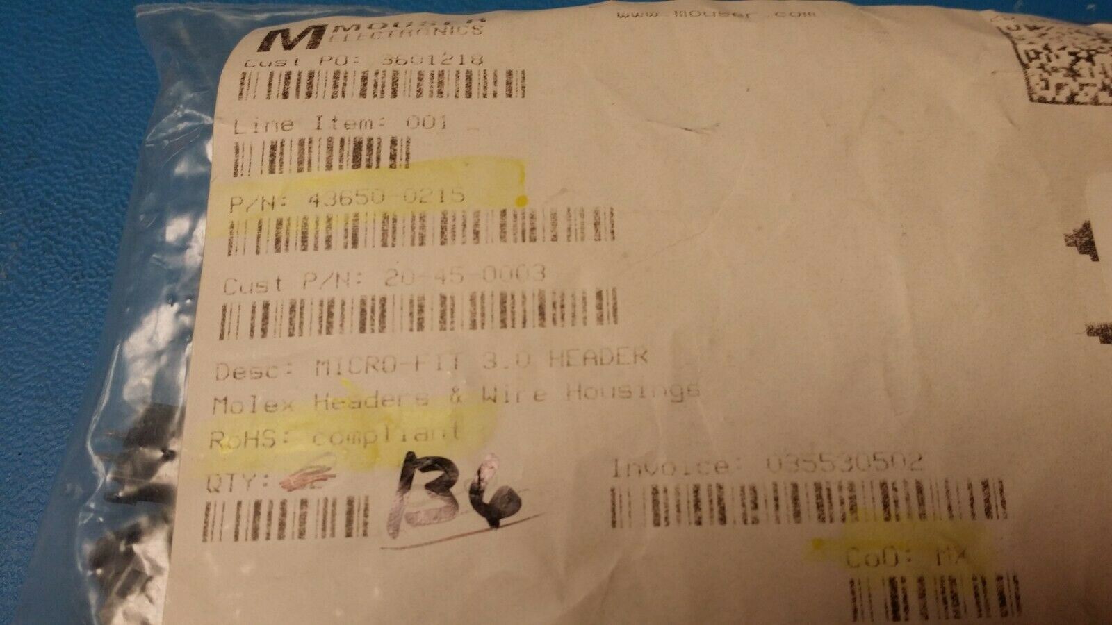 THIS LISTING IS FOR (10 PCS) OF 43650-0215 BY MOLEX