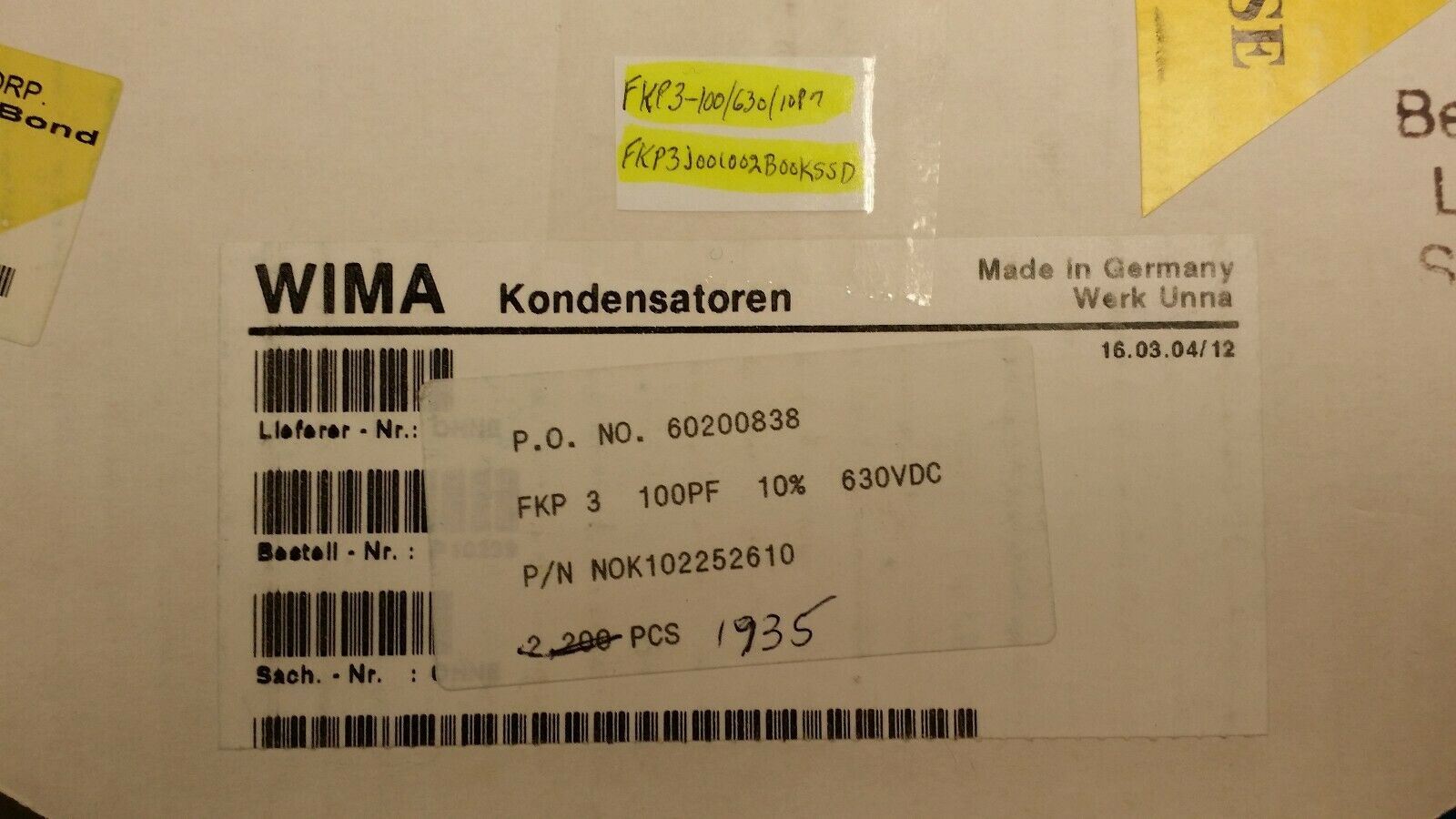 THIS LISTING IS FOR (10PC) OF FKP3-100/630/10 BY WIMA