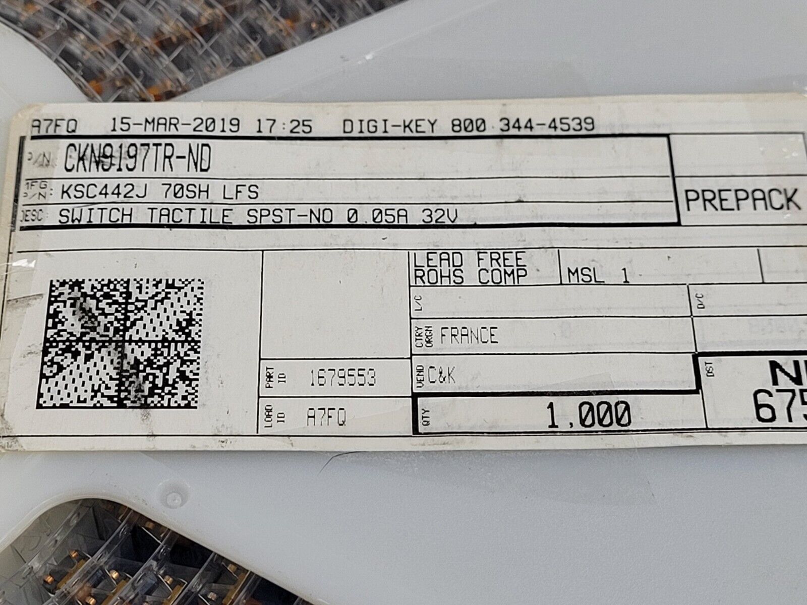THIS IS FOR (10 PCS) OF KSC442J70SHLFS BY C&K