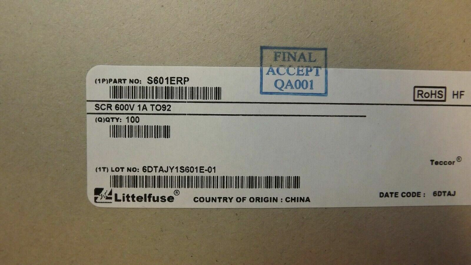 THIS LISTING IS FOR (10PCS) OF S601E S601ERP BY LITTELFUSE