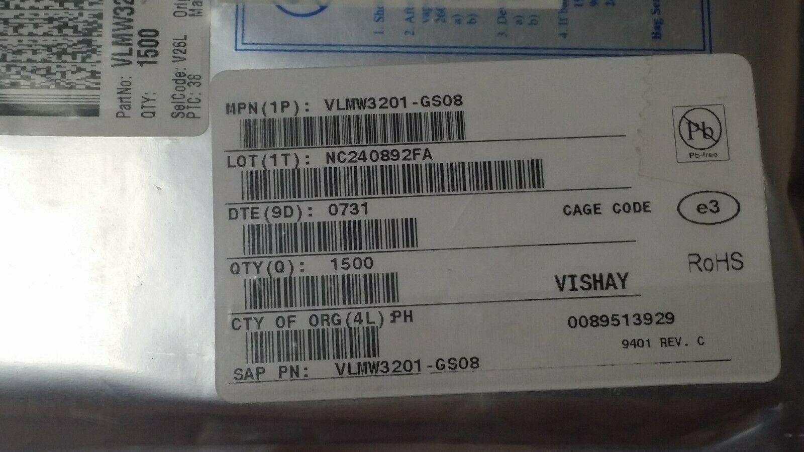 THIS IS FOR (1500) OF VLMW3201-GS08 BY VISHAY