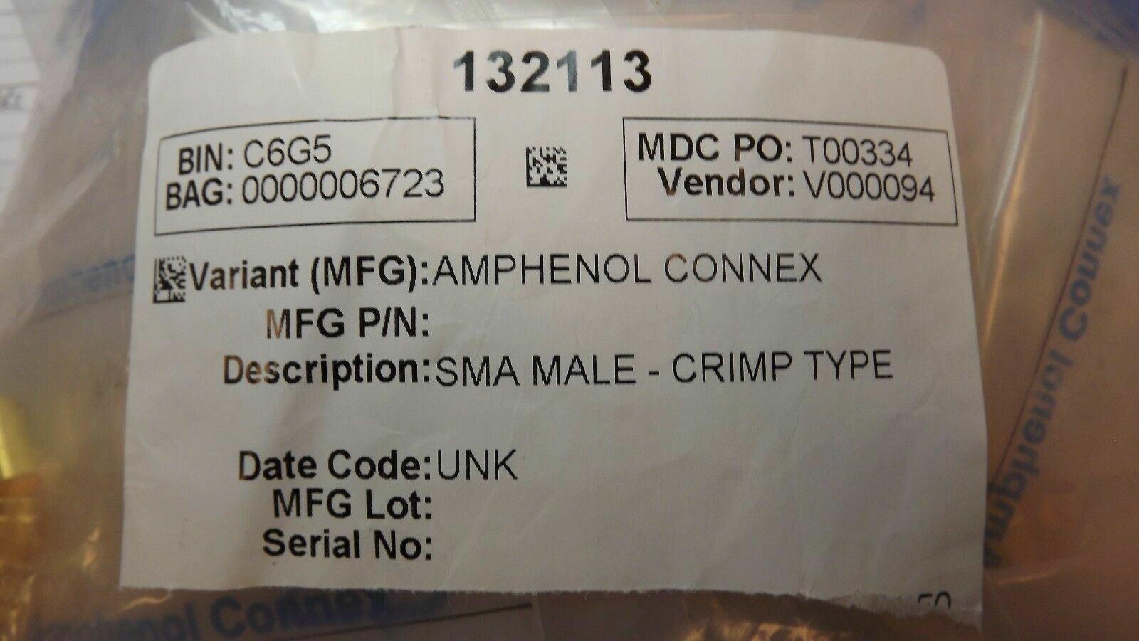 (1PC) 132113 Conn SMA PL 0Hz to 12.4GHz 50Ohm Crimp ST Cable Mount Gold