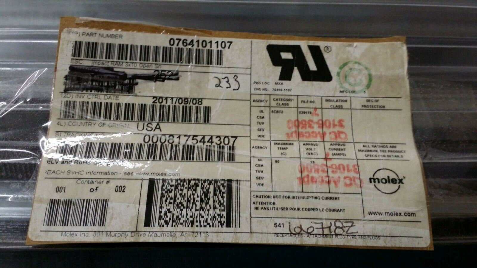 (1pc) 76410-1107 Conn Hard Metric HDR 90 POS 1.9mm Press Fit RA Thru-Hole Impact