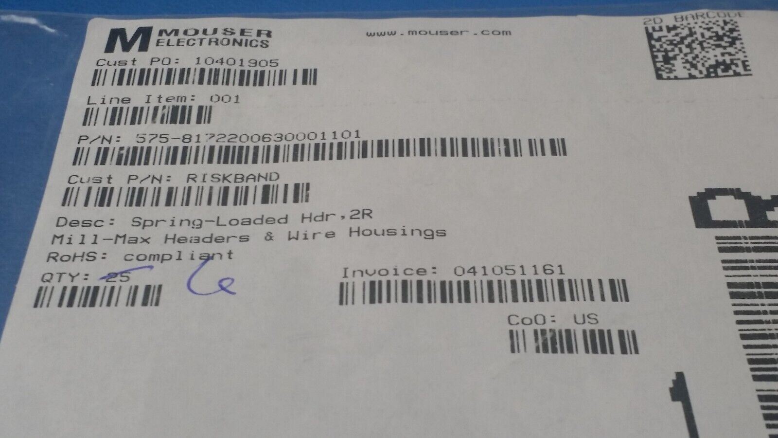 THIS IS FOR (1PC) OF 817-22-006-30-001101 BY MILL-MAX