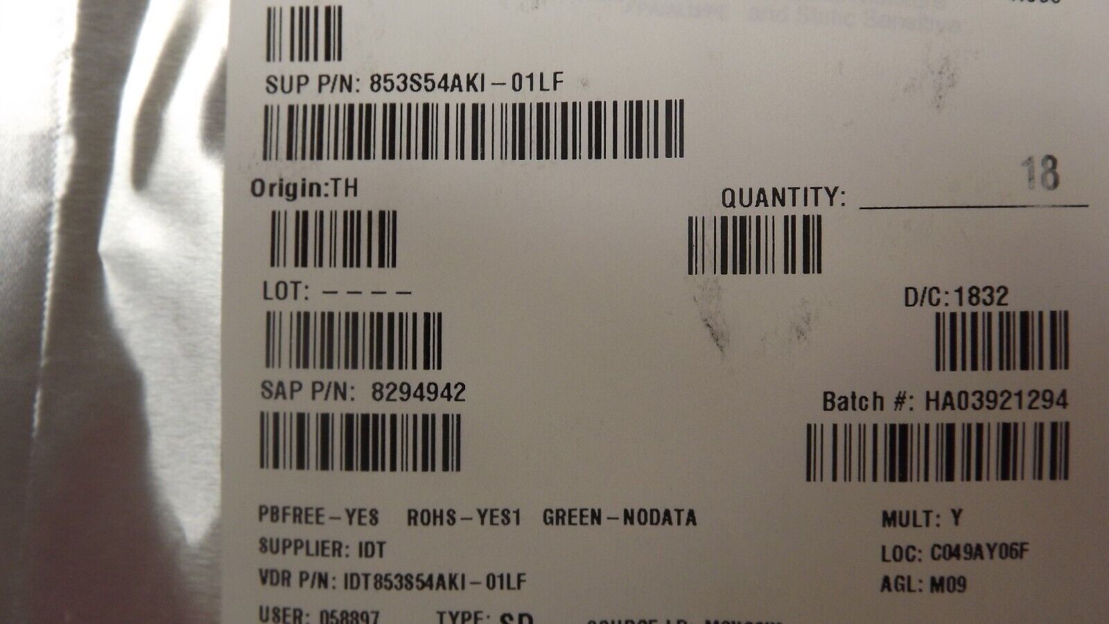 THIS LISTING IS FOR (1PC) OF 853S54AKI-01LF BY IDT