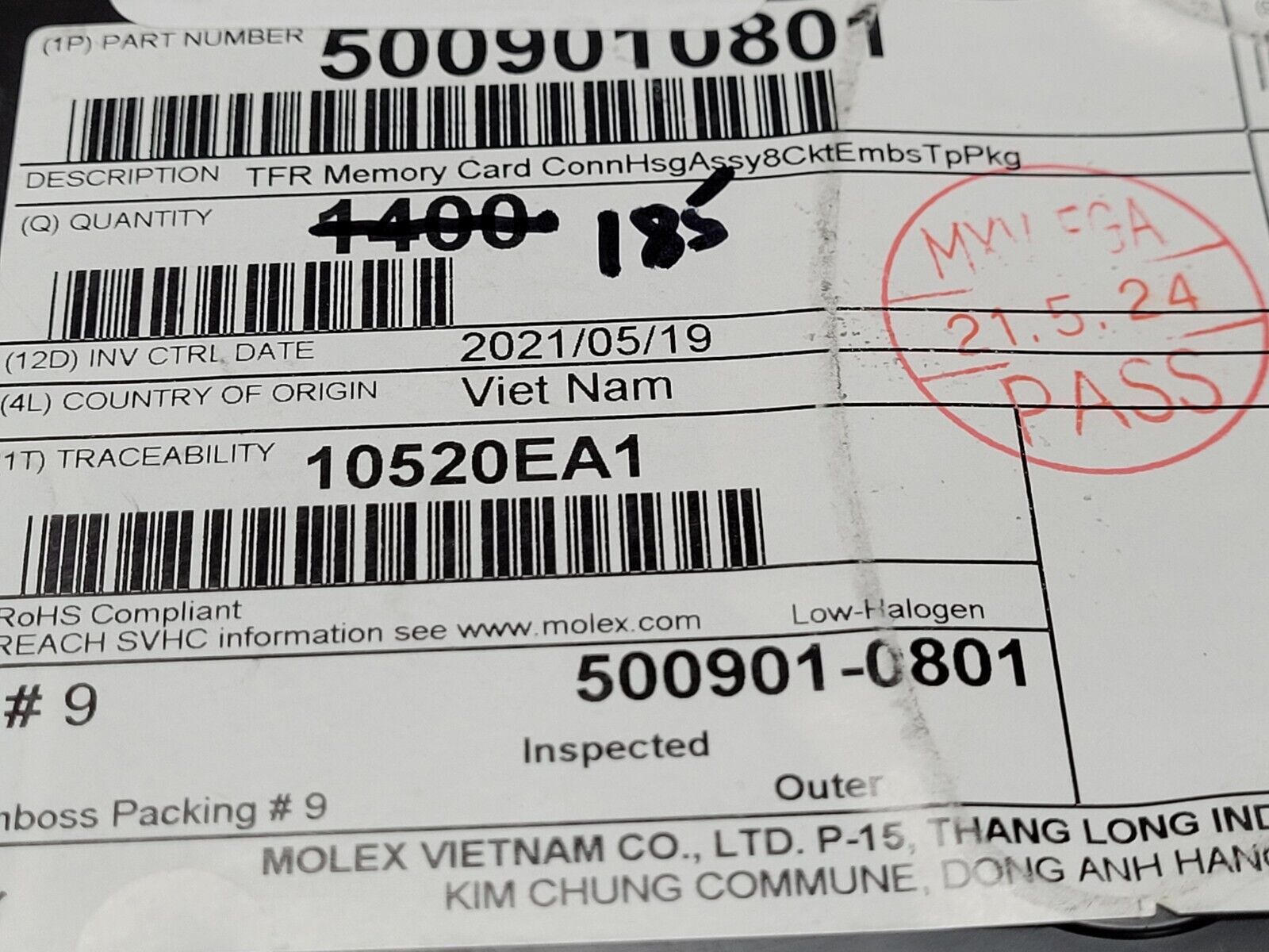 (2 PCS) 500901-0801 MOLEX CONNECTOR,MICRO SD,8POS ROHS