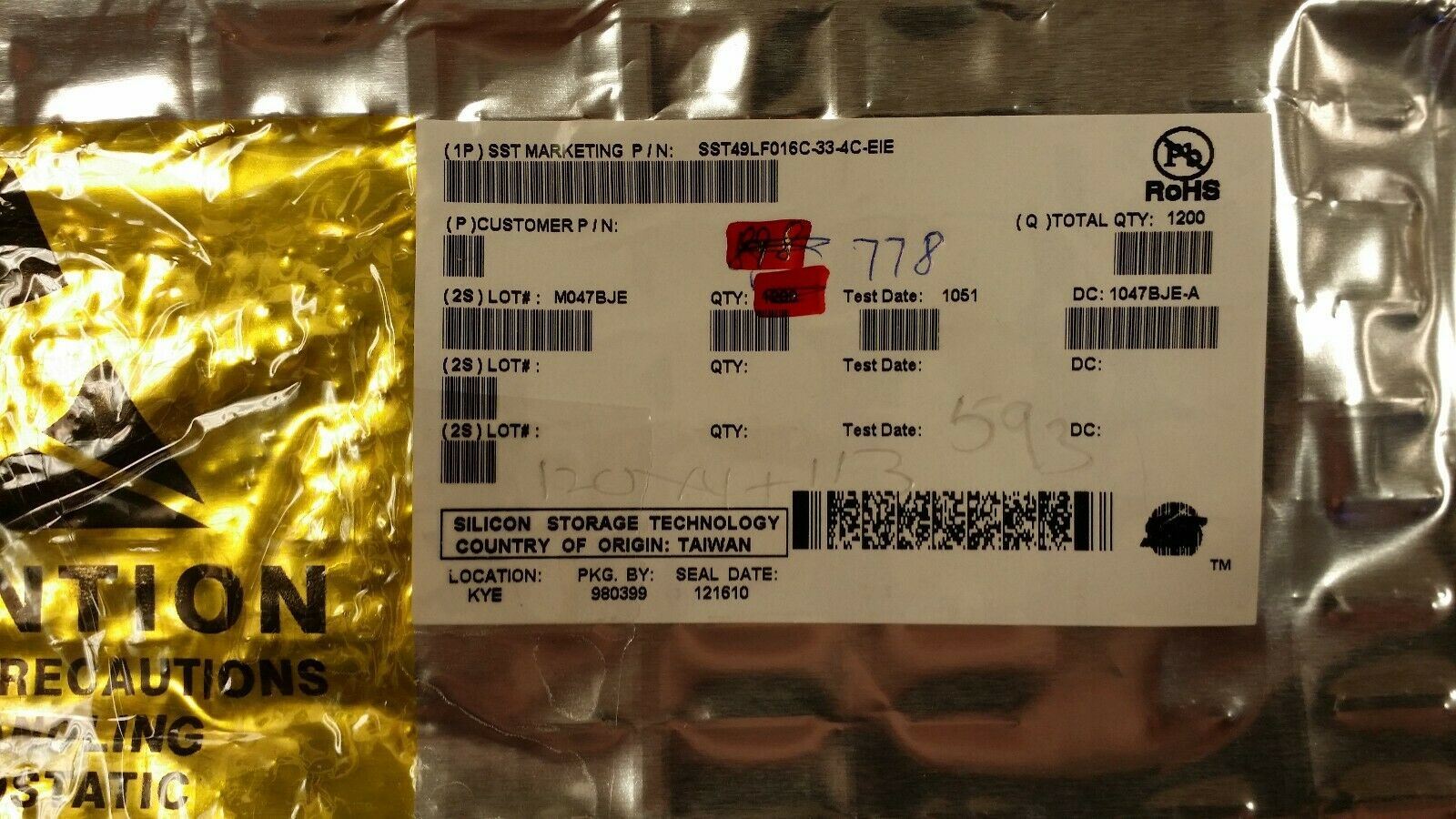 THIS LISTING IS FOR (2 PCS) OF SST49LF016C-33-4C-EIE BY SST