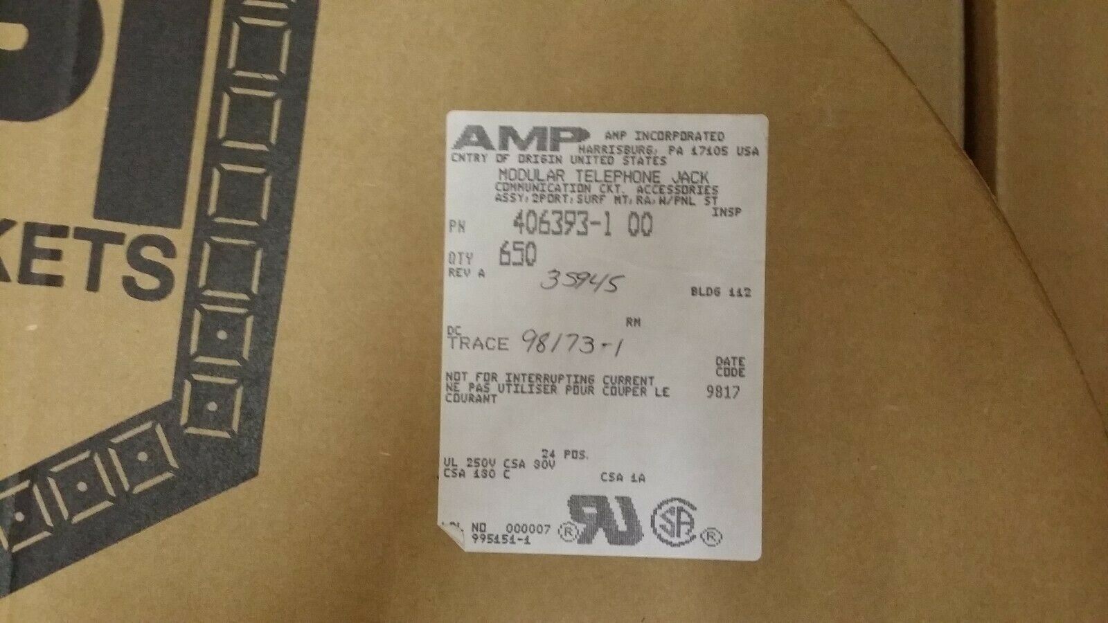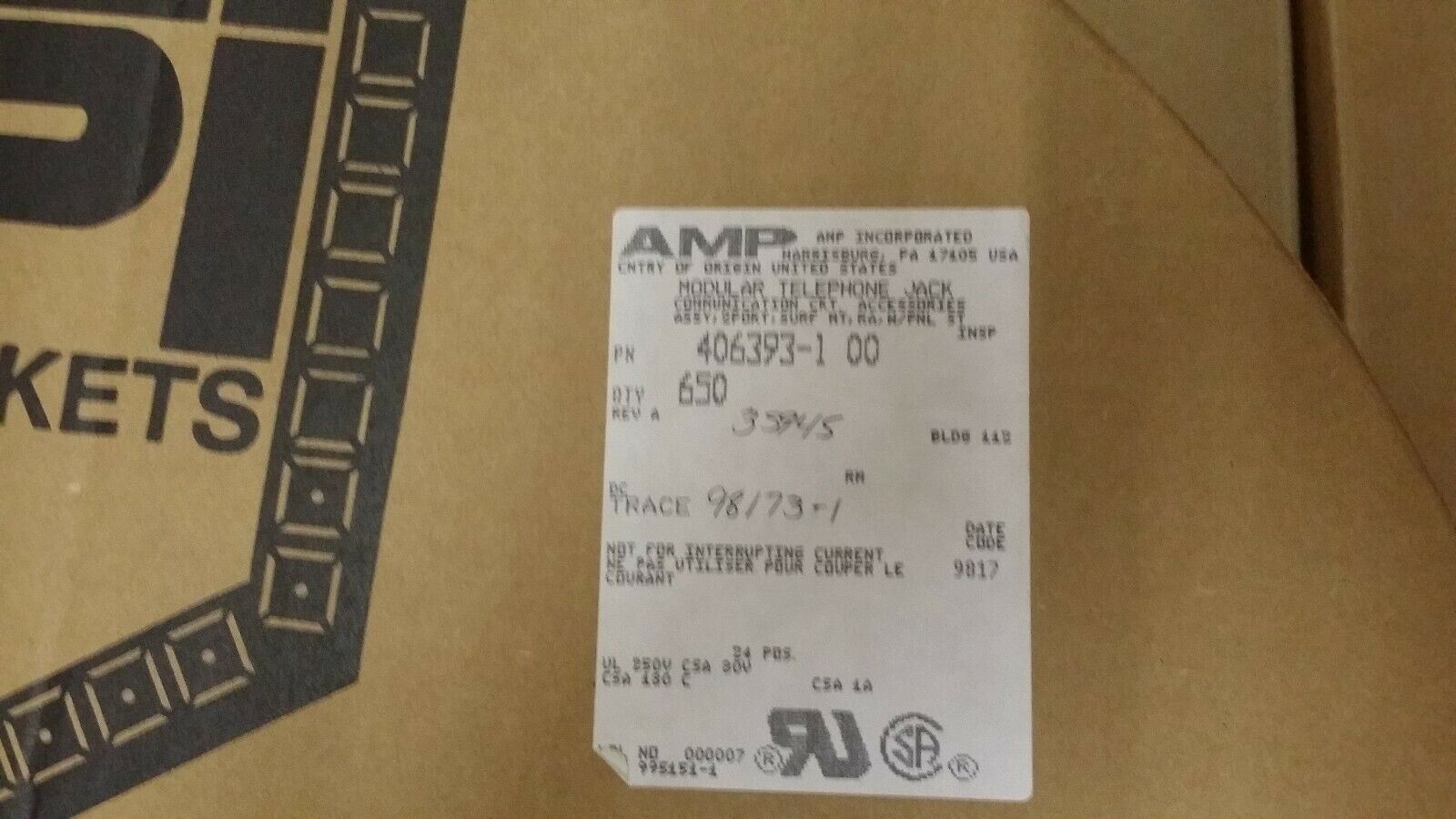 THIS LISTING IS FOR (20 PCS) OF 406393-1 BY AMP
