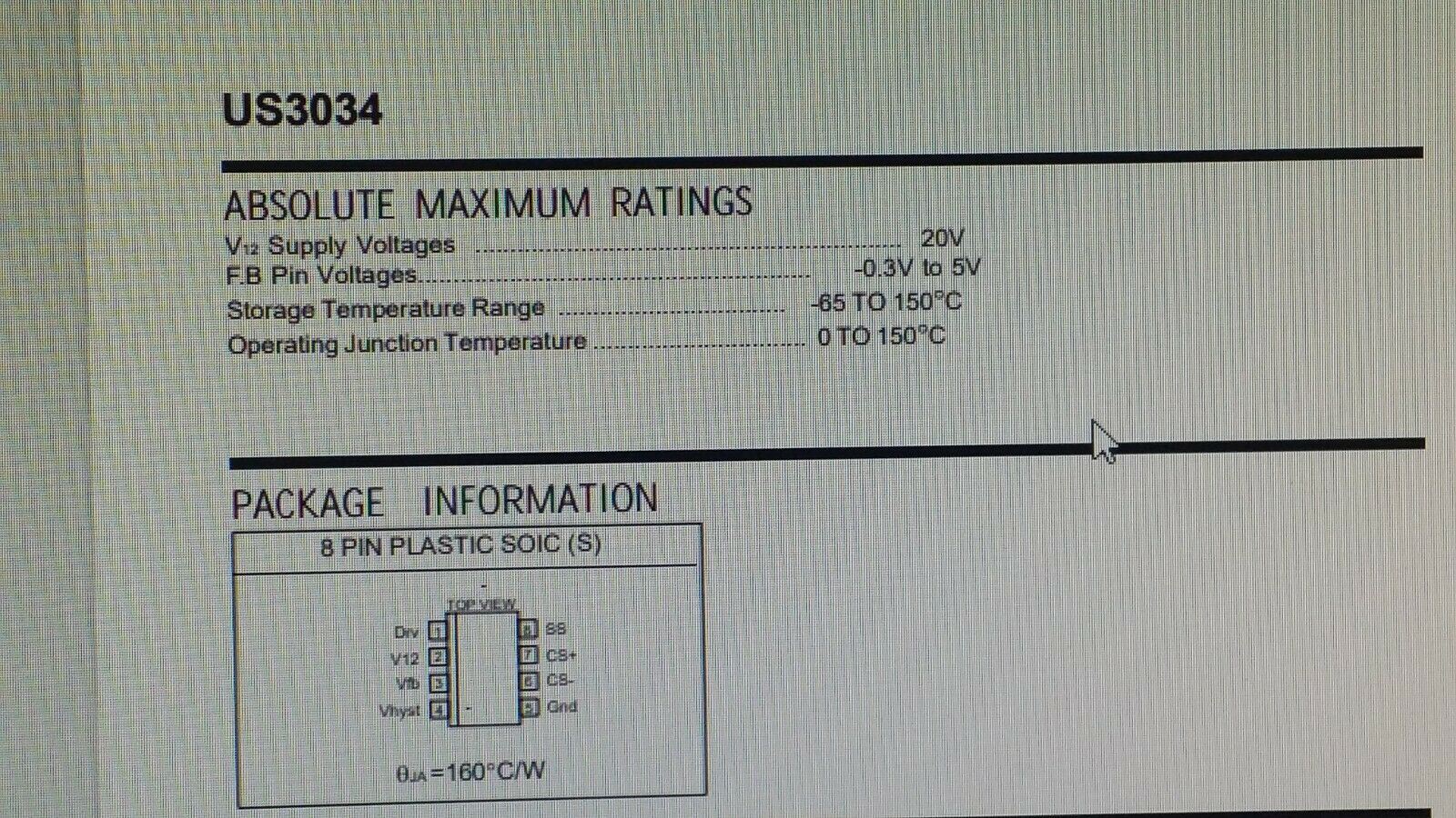 (20 PCS) US3034CS US3034CSTR UNISEM 8 PIN PWM SWITCHER CONTROLLER IC