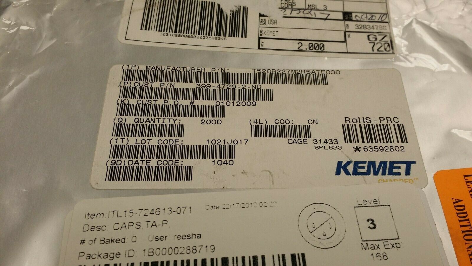 THIS LISTING IS FOR (2000 PCS) OF T520B227M2R5ATE030 BY KEMET