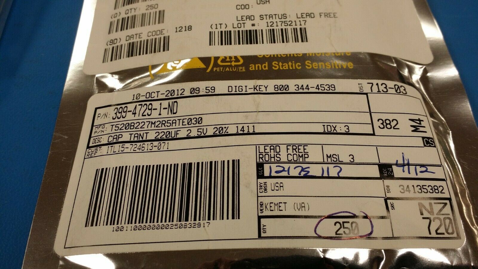 (2000 PCS) T520B227M2R5ATE030 KEMET, CAP TANT POLYMER 220uF 2.5V CASE B ROHS