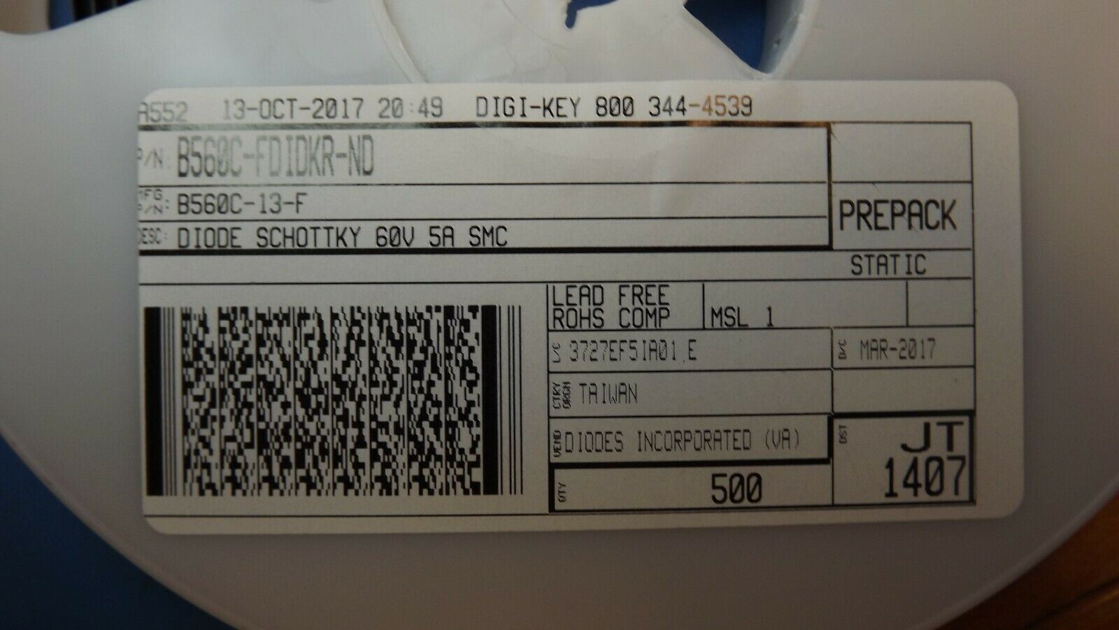 (20PCS) B560C-13-F DIODES INC. Diode Schottky 60V 5A 2Pin SMC