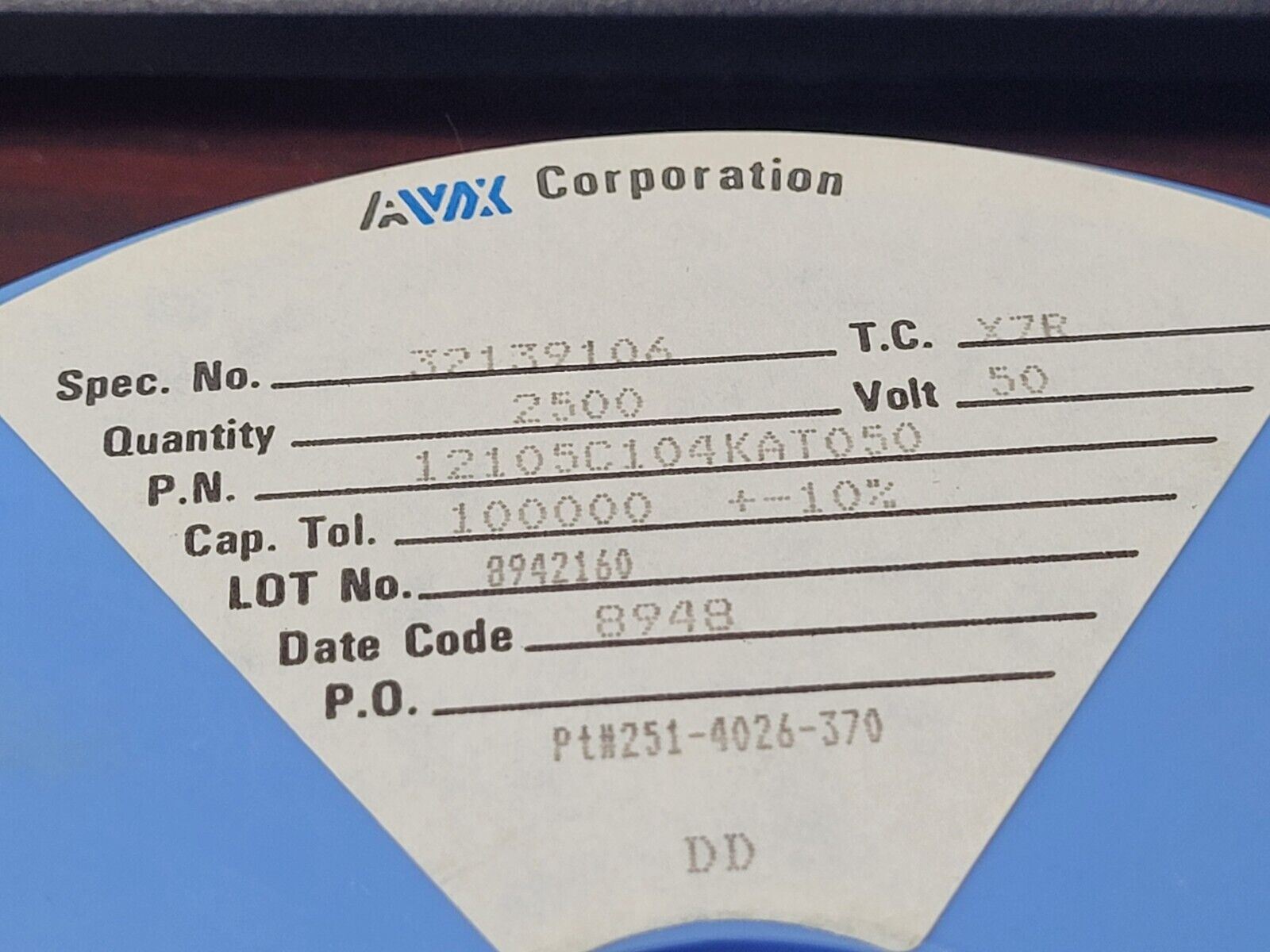 (25 PCS) 12105C104KAT2A AVX CAP CER 0.1UF 50V X7R 1210