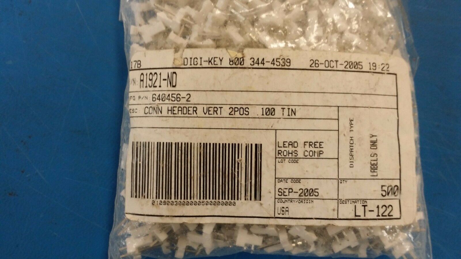 (25 PCS) 640456-2 TYCO CONN HEADER VERT 2POS .100 COPPER ALLOY TIN