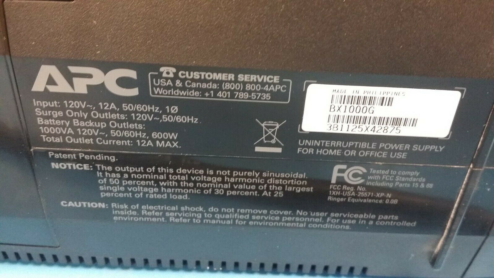 THIS LISTING IS FOR APC UPS: 600W 120V XS1000, MODEL BX1000G